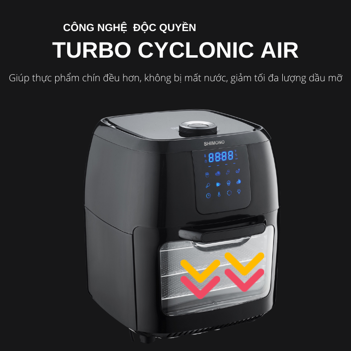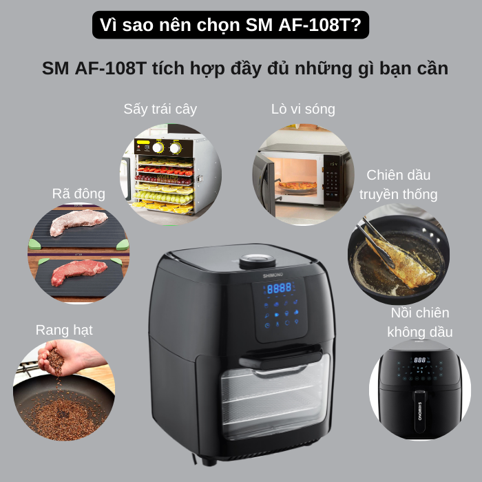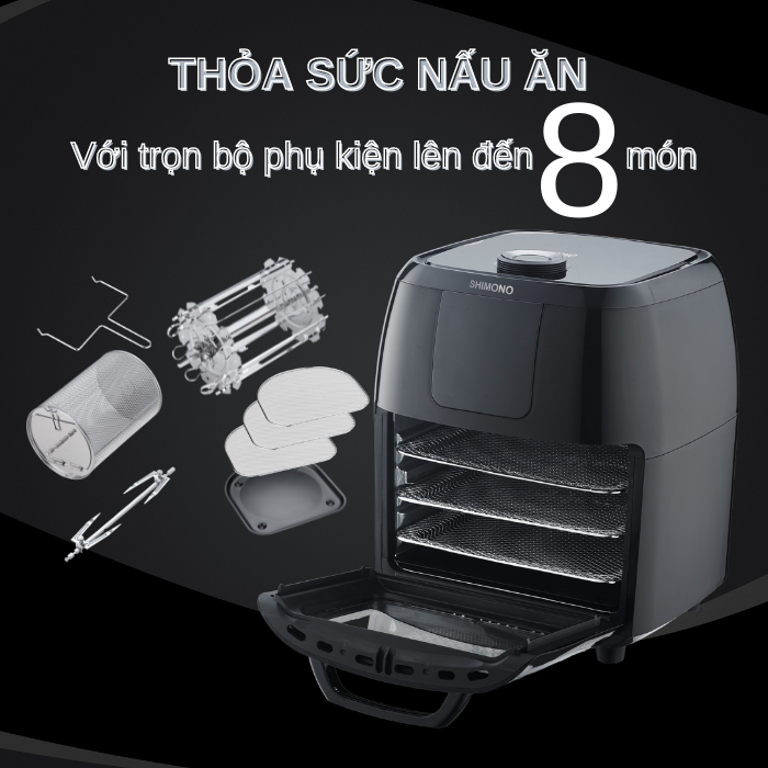✨Nồi Chiên Không Dầu SHIMONO SM-AF108T 10L 1800W Cao Cấp Tiêu Chuẩn FDA Hoa Kỳ, LFGB Đức Tặng Kèm Trọn Bộ 9 Phụ Kiện Hàng Chính Hãng