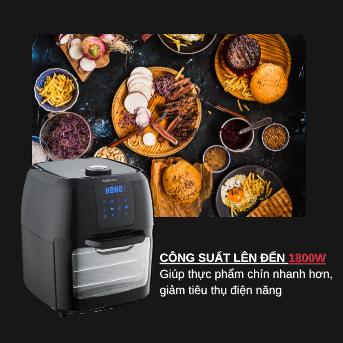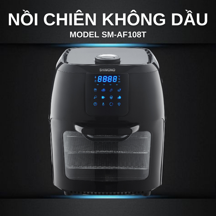 Mua tại TiktokNồi Chiên Không Dầu SHIMONO SM-AF108T 10L 1800W Cao Cấp Tiêu Chuẩn FDA Hoa Kỳ, LFGB Đức Tặng Kèm Trọn Bộ 9 Phụ Kiện