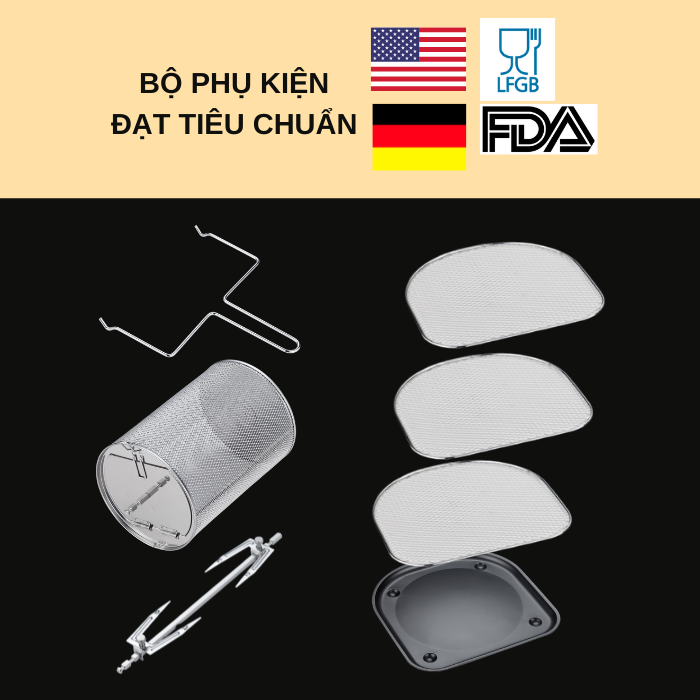 ✨Nồi Chiên Không Dầu SHIMONO SM-AF806T 8L 1500W Cao Cấp Tiêu Chuẩn FDA Hoa Kỳ, LFGB Đức Tặng Kèm Trọn Bộ 9 Phụ Kiện Hàng Chính Hãng