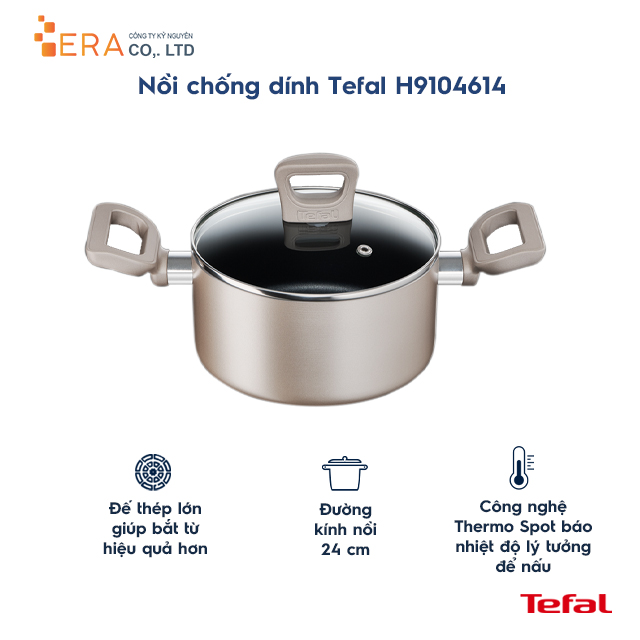 THÔNG TIN SẢN PHẨM: Thương hiệu: Tefal Model: G1354595 Nồi hợp kim nhôm, phủ lớp chống dính Titanium bền bỉ, an toàn cho sức khỏe. Đường kính 22 cm, có thể luộc được gà khoảng