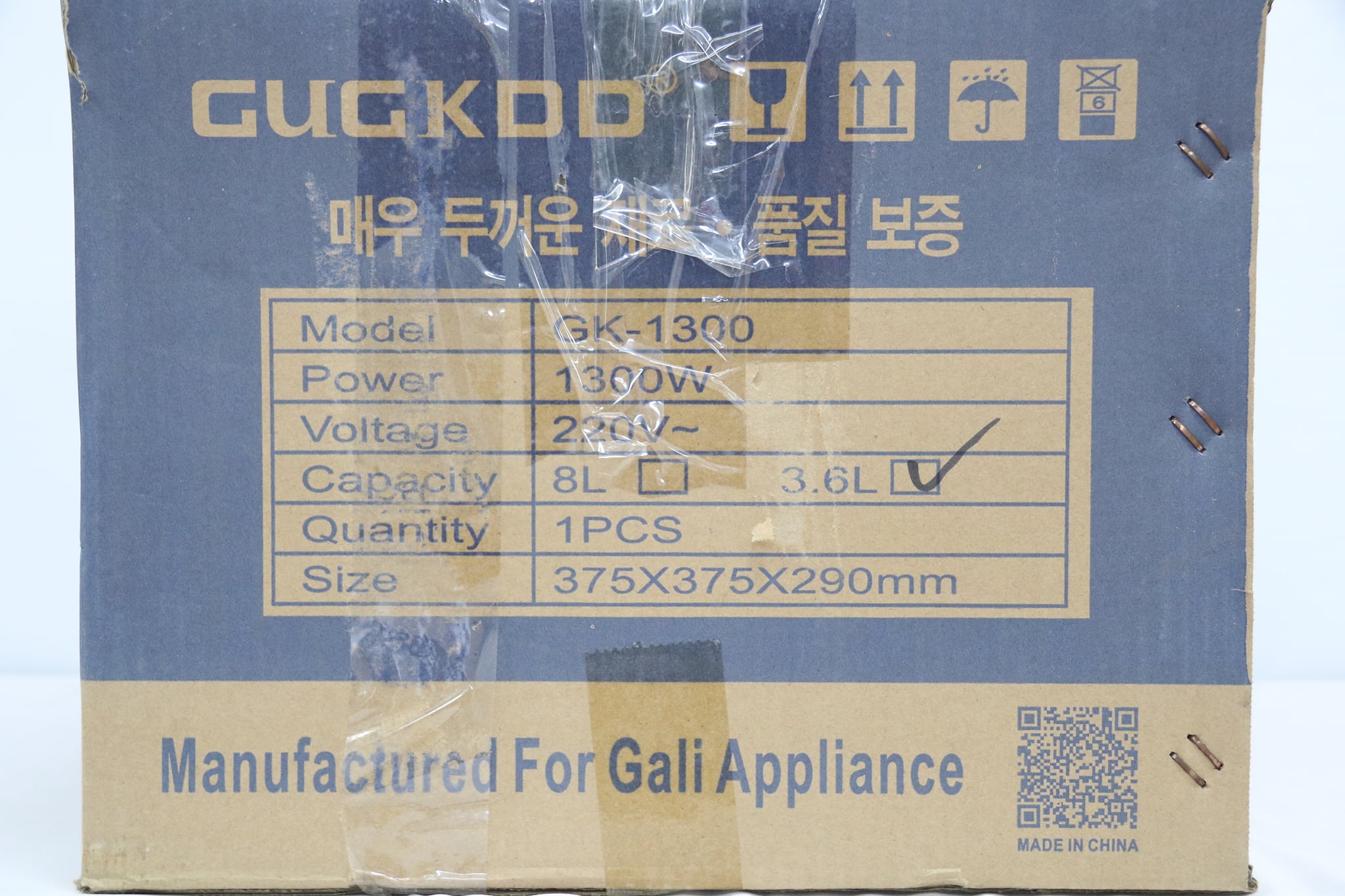 Mua tại TiktokThông số kỹ thuật của nồi cơm điện GUGKDD Loại nồi: Nồi cơm điện nắp rời. Model lần lượt: GK1300/1600/2000/3000/3800/4500 Công suất lần lượt: 1300W/1600W/2000W/3000W/3800W/4500W Điện áp: 220V/50Hz. Dung tích lần lượt: 3.6L/4.2L/5.6L/8.5L/10L/14L. Số mâm nhiệt: 1 mâm nhiệt. Phụ kiện đi kèm: Muôi xới cơm, cốc đong gạo. Kích thước (Box size): tùy size Thương hiệu: GUGKDD dùng cho quán ăn, nhà hàng hay nhà xưởng vì dung tích lớn