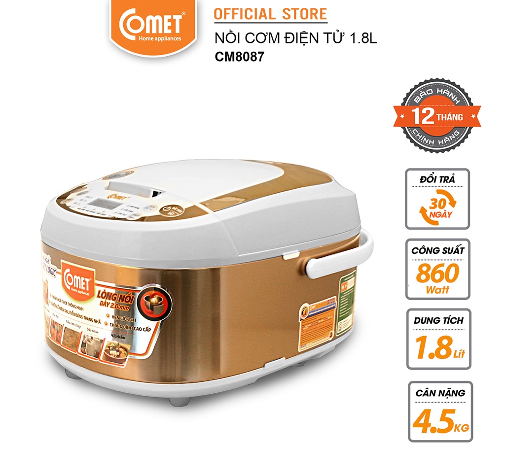 ✨Nồi Cơm Điện Tử Comet CM8087 1.8L - 860W- Hàng chính hãng