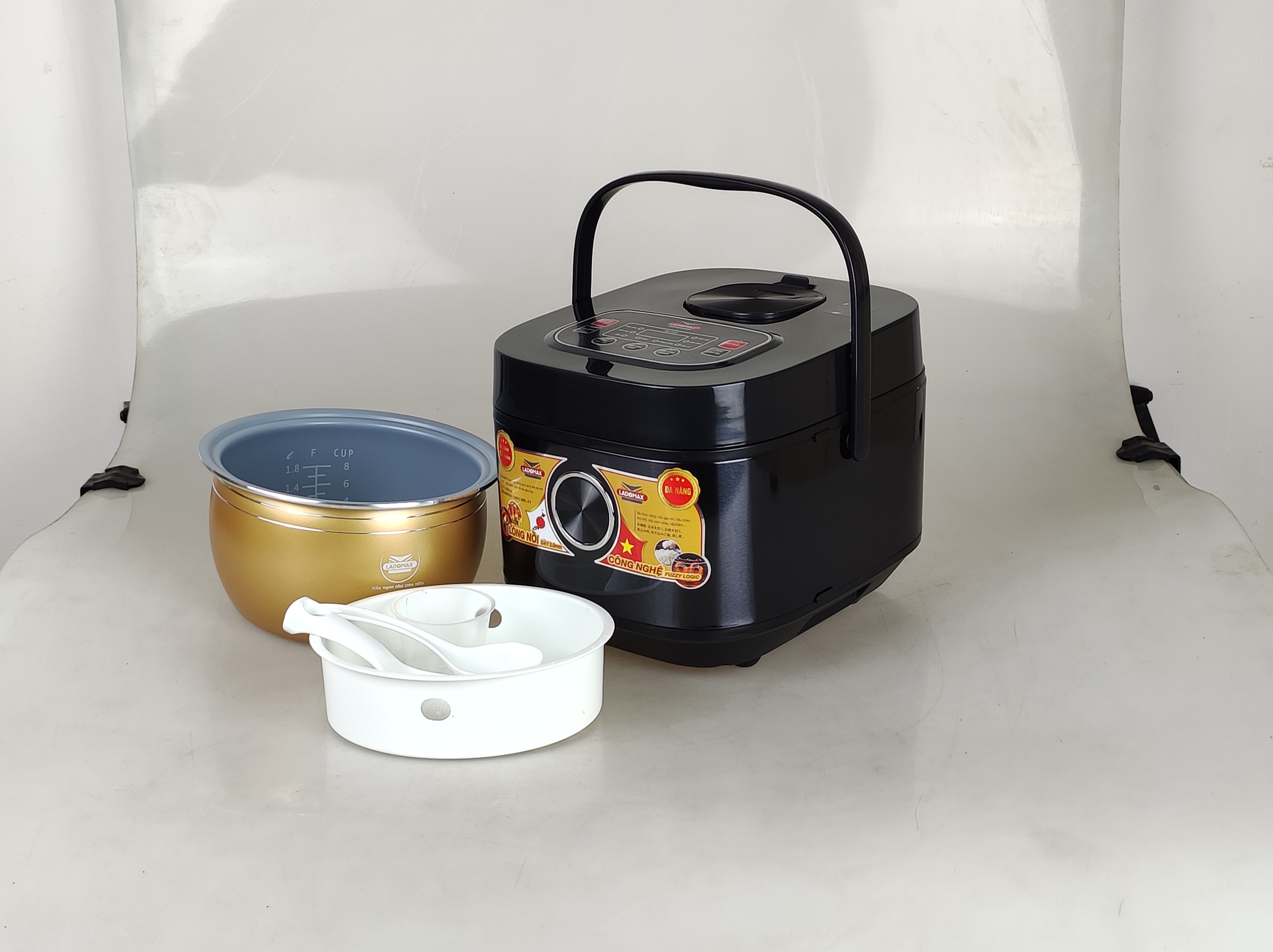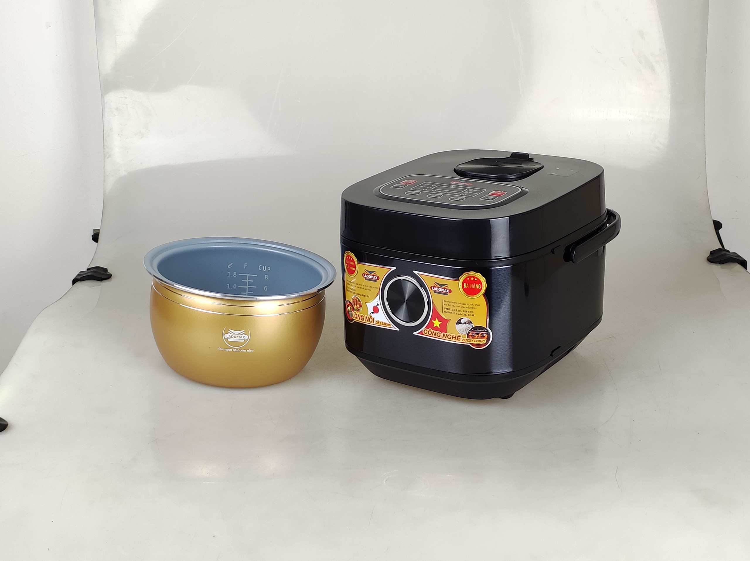 ✨Nồi cơm điện tử lòng niêu 1.8L Ladomax màu đen, công suất 700W, tráng men chống dính-Hàng chính hãng