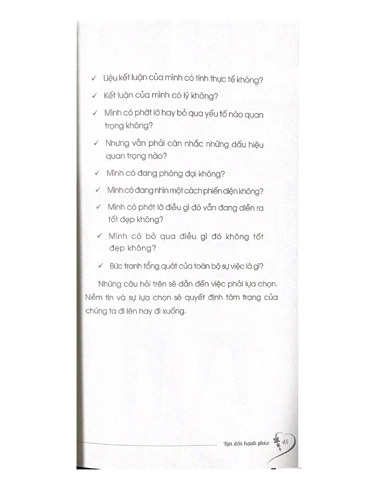 Mua tại TiktokNơi Đến Hạnh Phúc – Vanlangbooks 1.Giới thiệu sách Bạn muốn một cuộc sống đầy ý nghĩa? Bạn muốn ném bay căng thẳng và lo âu? Bạn muốn HẠNH PHÚC? Mọi chuyện đều có thể! Chỉ là… bạn có dám thay đổi hay không? Hãy cùng tác giả Marc Reklau học cách vượt qua nỗi sợ thất bại, chia tay chủ nghĩa hoàn hảo, cải thiện các mối quan hệ, nâng cao tự tin, tự trọng và yêu thương chính bản thân mình. 2.Thông tin chi tiết Mã hàng 8935074123947 Tên Nhà Cung Cấp Cty Văn Hóa Văn Lang Tác giả Marc Reklau Người Dịch Thế Anh, Vũ Hưng NXB NXB Thanh Hóa Năm XB 2021 Trọng lượng (gr) 300 Kích Thước Bao Bì 21 x 13.5 cm Số trang 256 Hình thức Bìa Mềm