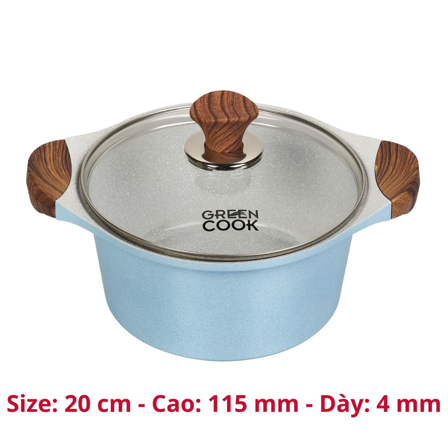 Nồi đúc bếp từ men đá chống dính xanh sapphire Green Cook GCS09-IH công nghệ Hàn Quốc