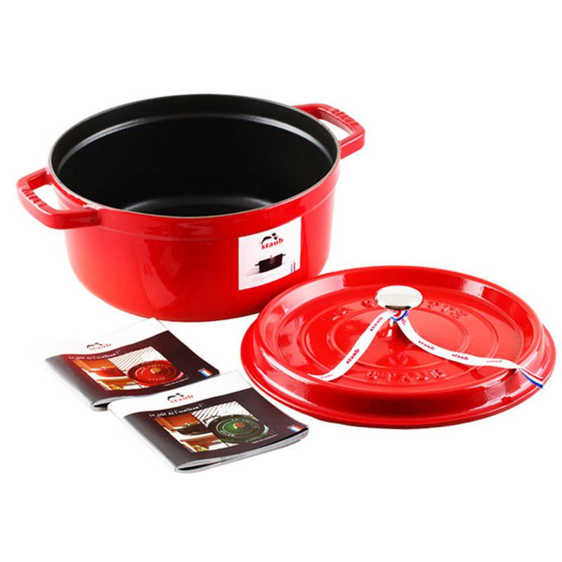 - Nồi tròn Staub bằng gang đúc tráng men - Nồi Tròn Staub – Màu Đỏ Lựu - Thiết kế sang trọng, có thể đặt ngay trên bàn ăn sau khi nấu. - Lớp phủ màu