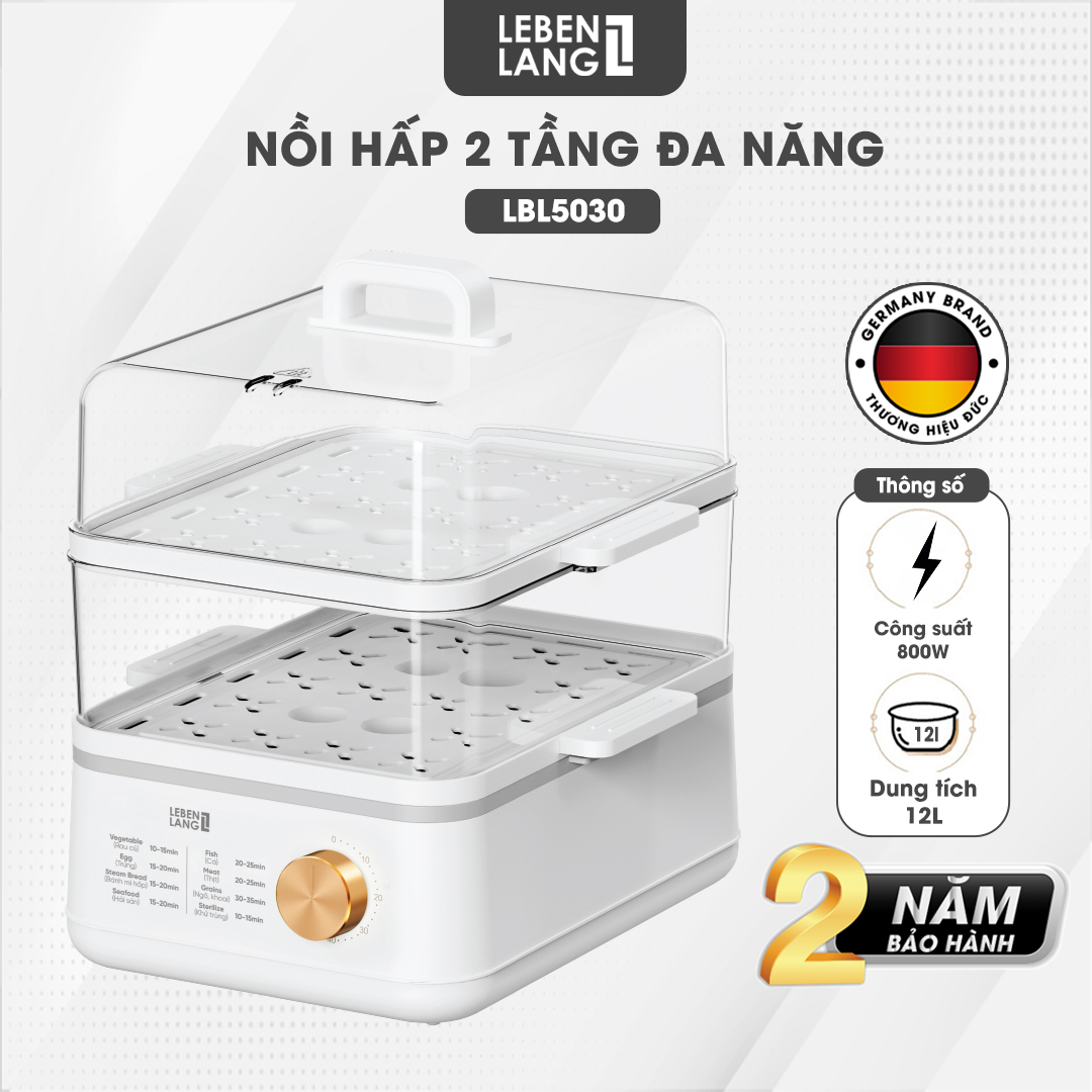 ✨Nồi hấp điện đa năng LEBENLANG LBEL5030 hấp 2 tầng,12L tiện lợi, 800W, bảo hành 2 năm - hàng chính hãng