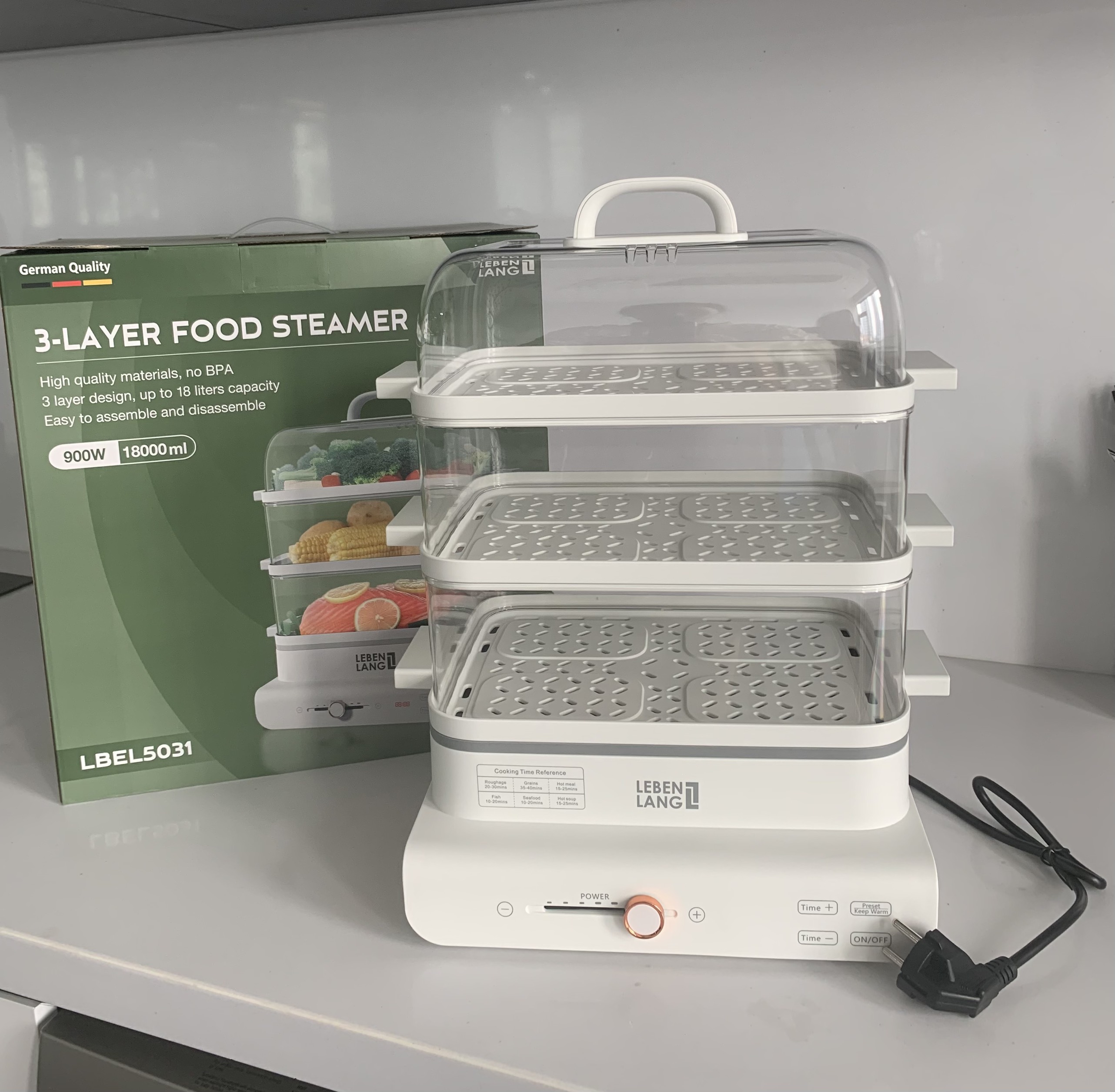 Nồi hấp điện đa năng LEBENLANG LBEL5031 hấp 3 tầng, siêu tiện lợi, dung tích 18L, công suất 900W - hàng chính hãng THÔNG SỐ KỸ THUẬT - Thương hiệu: Lebenlang - Model: LBEL5031 -