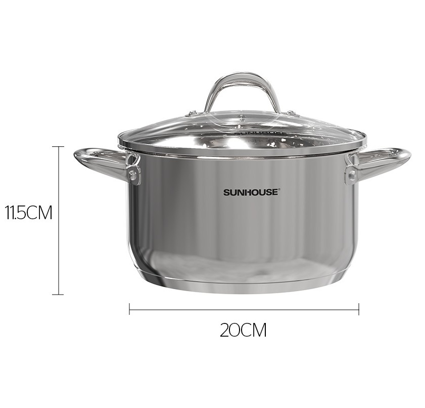 Nồi Inox 3 đáy Sunhouse SHG301-20 được làm bằng chất liệu Inox cao cấp, có độ sáng bóng, dễ vệ sinh, tạo nên một diện mạo hiện đại hơn cho căn bếp nhà bạn.