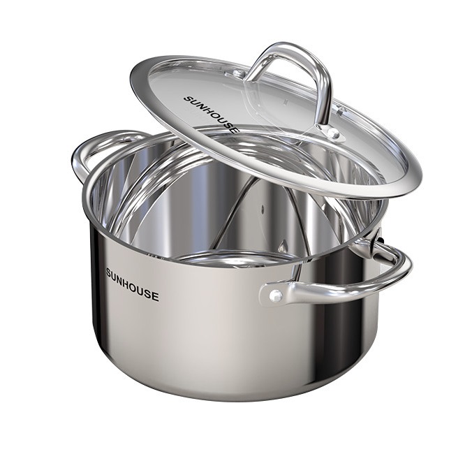 NỒI INOX304 ĐÁY LIỀN SUNHOUSE SHG706-24 nổi bật với kết cấu đa lớp liền khối, chống phồng đáy đảm bảo độ bền bỉ trong quá trình đun nấu, tuổi thọ của bộ sản phẩm được kéo dài lâu hơn. Bên cạnh đó, là khả năng truyền nhiệt và giữ nhiệt hiệu quả, phân bổ nhiệt đồng đều giúp thực phẩm được làm nóng đều, không lo cháy khét. Đáy nồi được cấu thành từ Inox430 với khả năng bắt từ siêu nhạy, dùng tốt cho mọi loại bếp bao gồm là dòng bếp “kén” nồi như bếp nhập khẩu.
