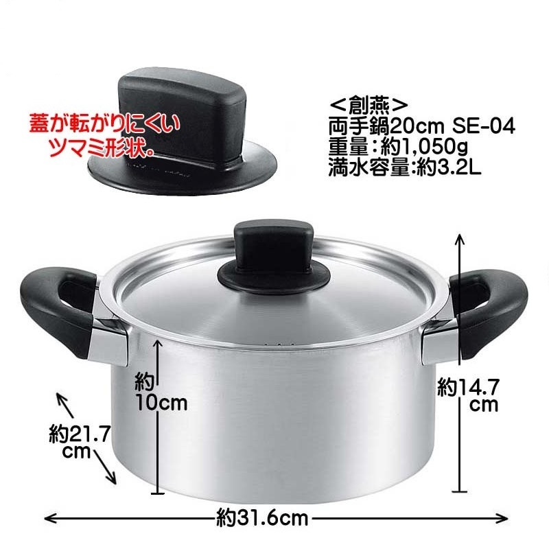 Nồi inox Tsubame 20cm THÔNG TIN SẢN PHẨM Xuất xứ: Nhật Bản - Màu sắc: Màu trắng - Kích thước: 21.7x31.6x14.7cm - Chất liệu:Thân & nắp bằng inox 304 cao cấp nguyên khối không gỉ
