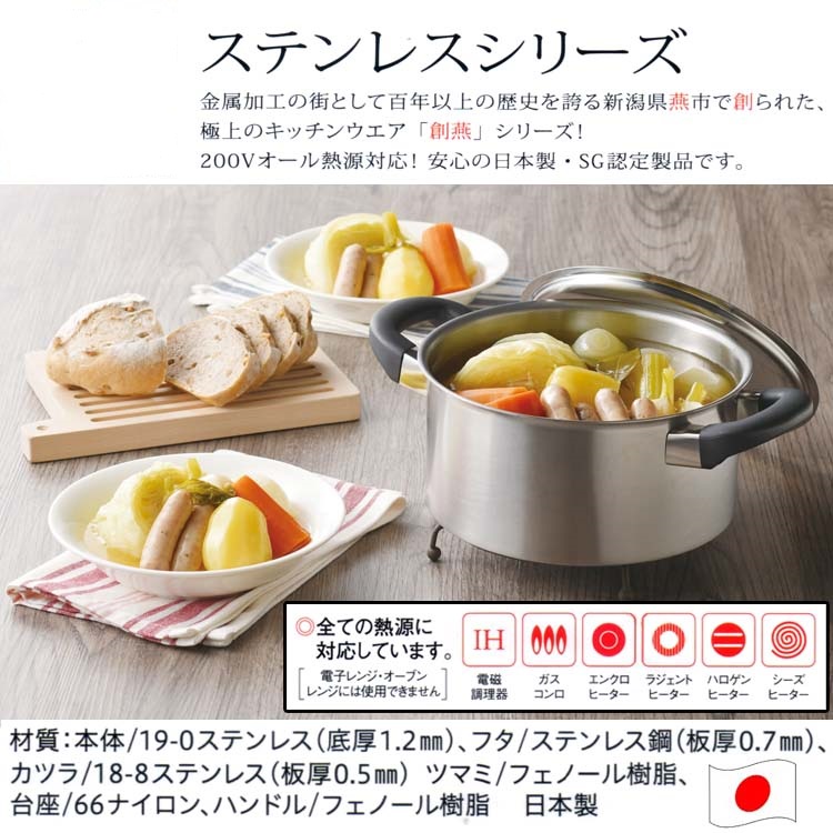 Nồi inox dùng cho bếp từ Yukihira Aji Ichi THÔNG TIN SẢN PHẨM Xuất xứ: Nhật Bản - Màu sắc: Màu trắng bạc | Tay cầm màu đen - Kích thước: - SJ-3411 : Ø15cm