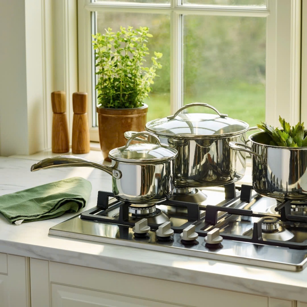 Bộ nồi chảo inox cán rời 9 món là giải pháp nấu ăn đa dụng cho gia đình hiện đại. Có thể nấu trên bếp và khi tháo cán các món trong bộ còn dùng