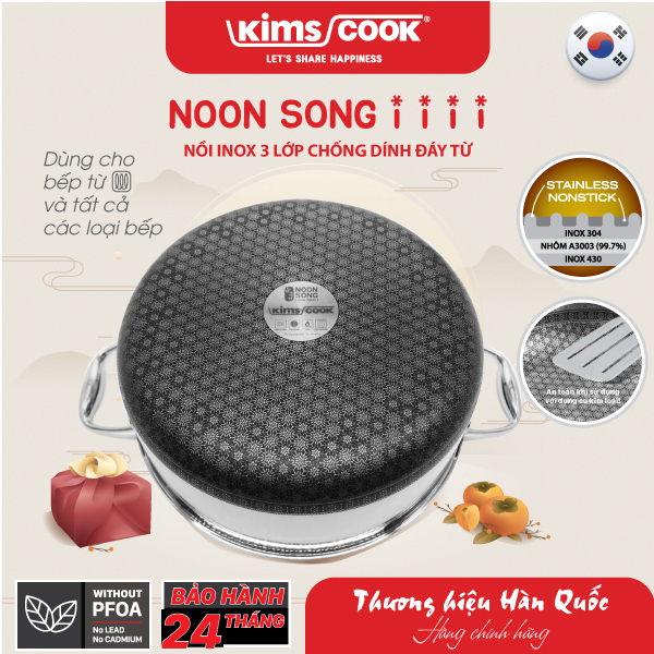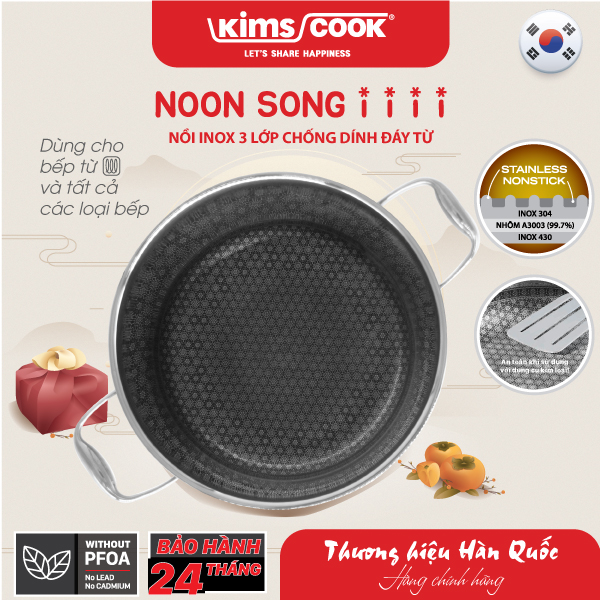 Nồi đáy từ cao cấp 3 lớp đúc liền inox 304 Kims Cook Noon Song ( 20cm/ 24cm / 26cm / 28cm )