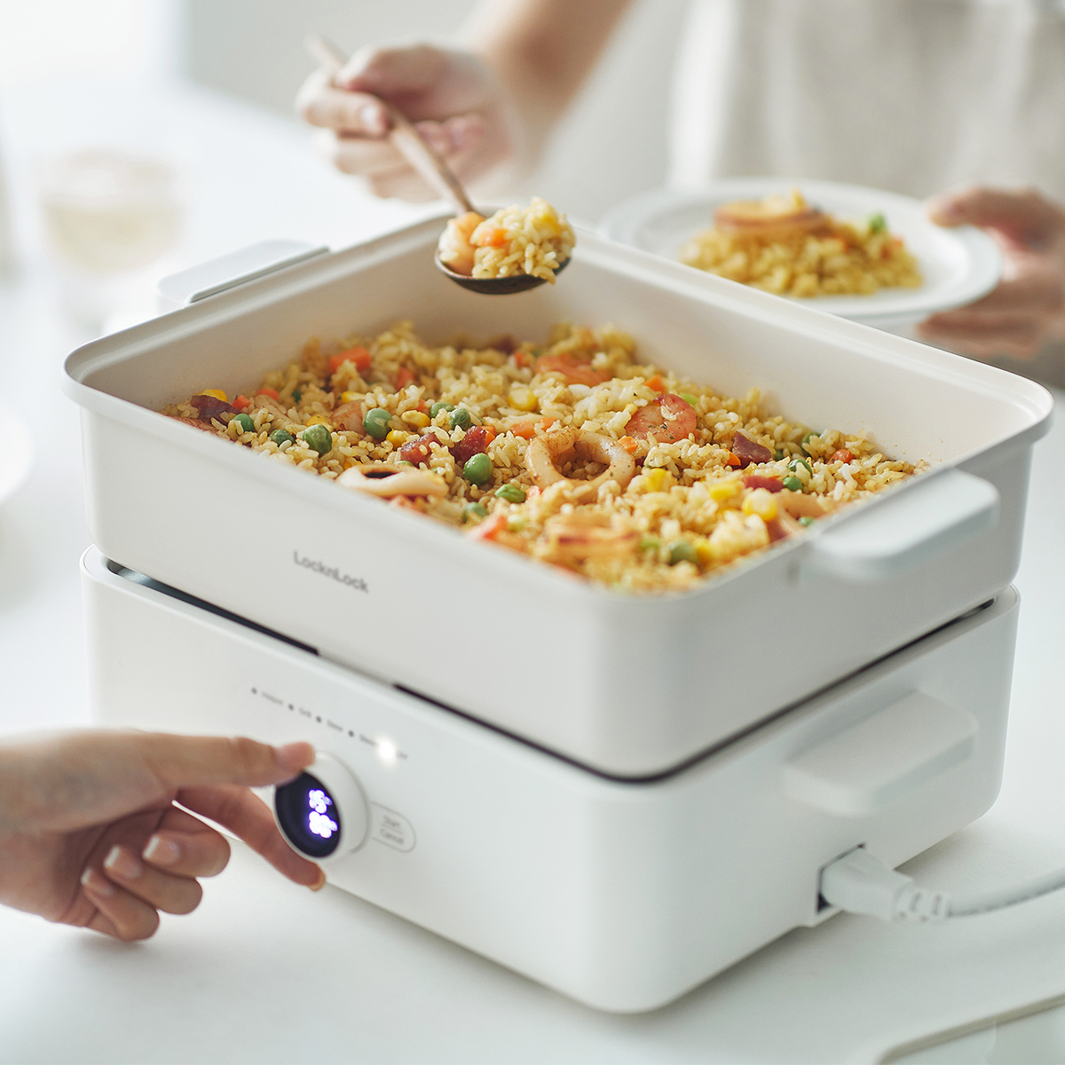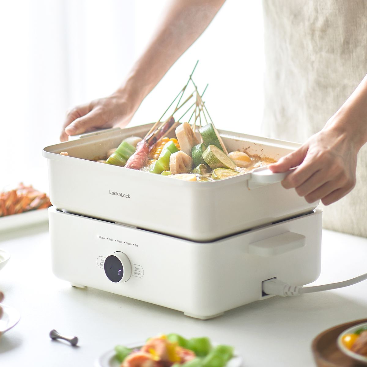 Review Nồi lẩu đa năng Lock&Lock Bianco Electric Multicooker 4.5L EJP154IVY màu ngà lẩu nướng luộc h