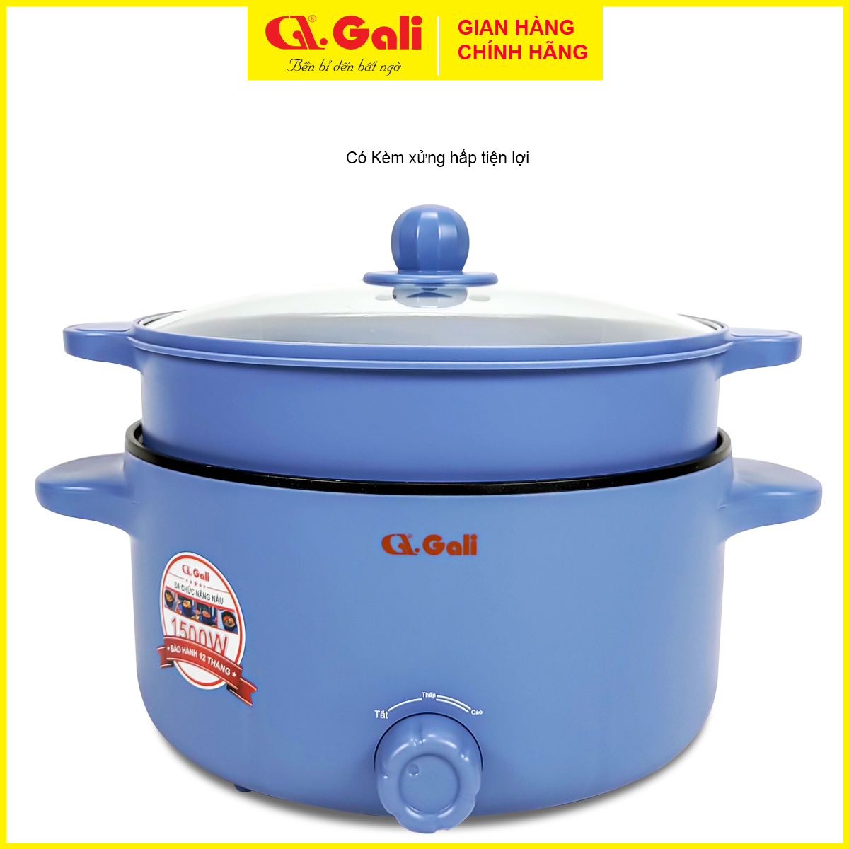 - Nồi lẩu điện Gali đa chức năng nấu, xào, hấp theo nhu cầu.