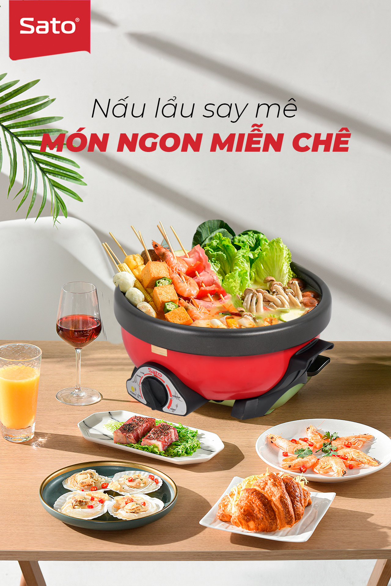 Nồi lẩu điện đa năng SATO ST-351HP: trợ thủ đắc lực cho gia đình bạn. Ăn lẩu tiện dụng, thời gian chuẩn bị nhanh chóng. Dung tích 3.5 L phù hợp với nhu cầu sử