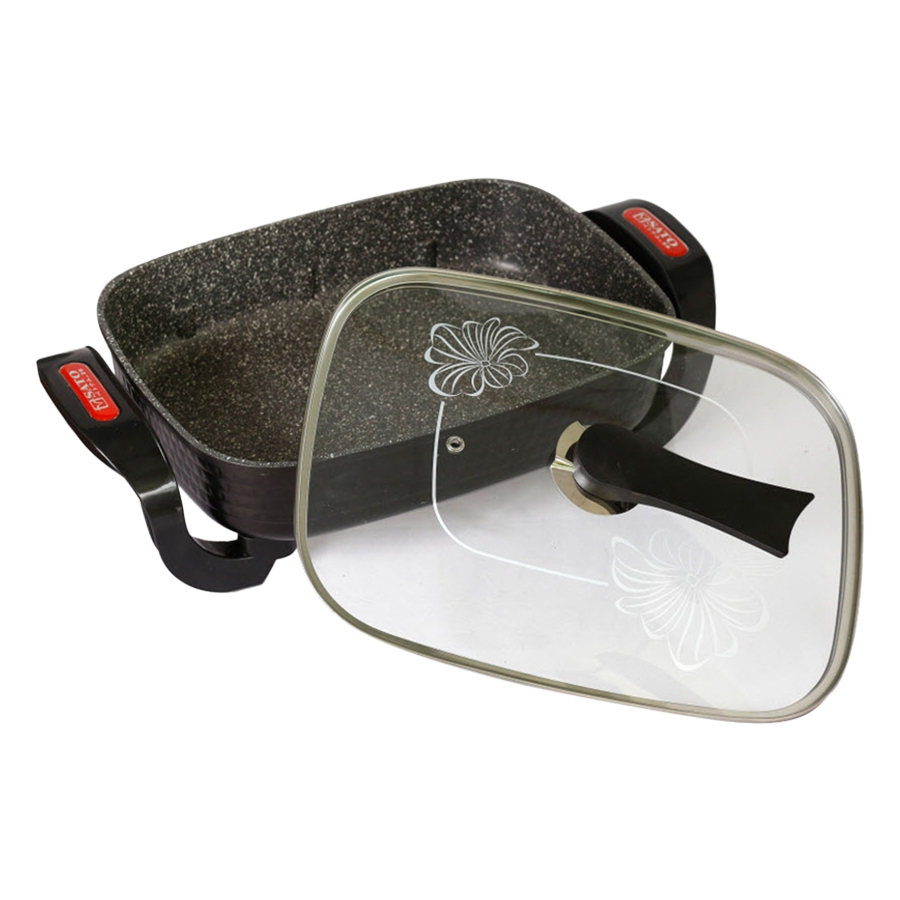 * THÔNG SỐ KĨ THUẬT Chất liệu : Hợp kim chống dính Dung tích : 3L Công suất : 1500W Hình dáng : Vuông Điện áp đầu vào : 220 - 50Hz Mã SP :