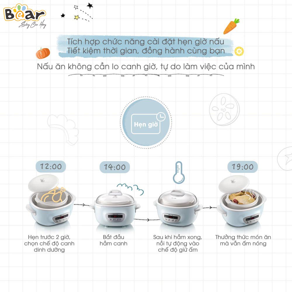 Nồi nấu chậm Bear 2,5L SUBE003 Bản Quốc Tế (Tiếng Việt)