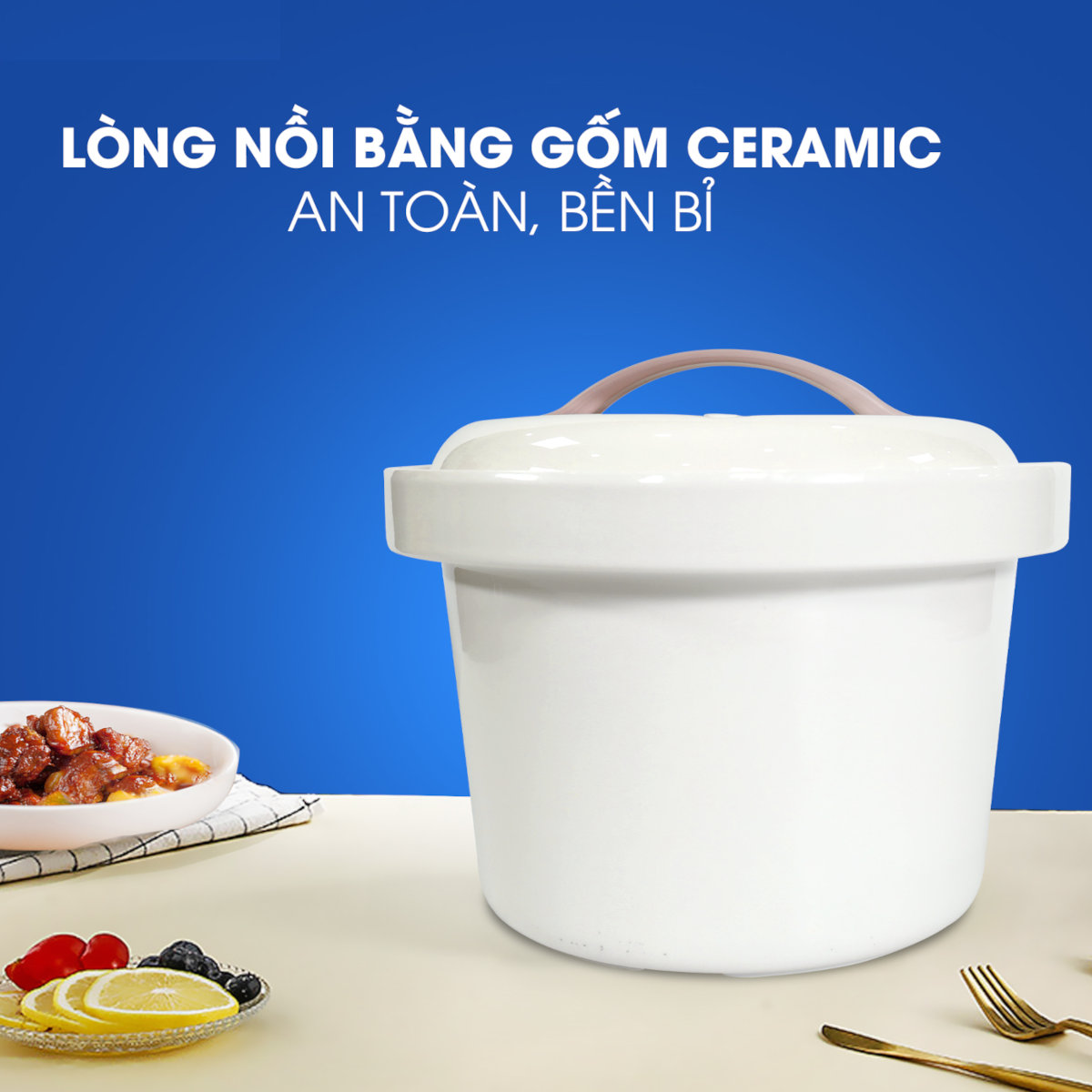 - Thiết kế thố bên trong dung tích 3 lít bằng sứ cao cấp chịu nhiệt tốt giúp giữ nhiệt lâu.