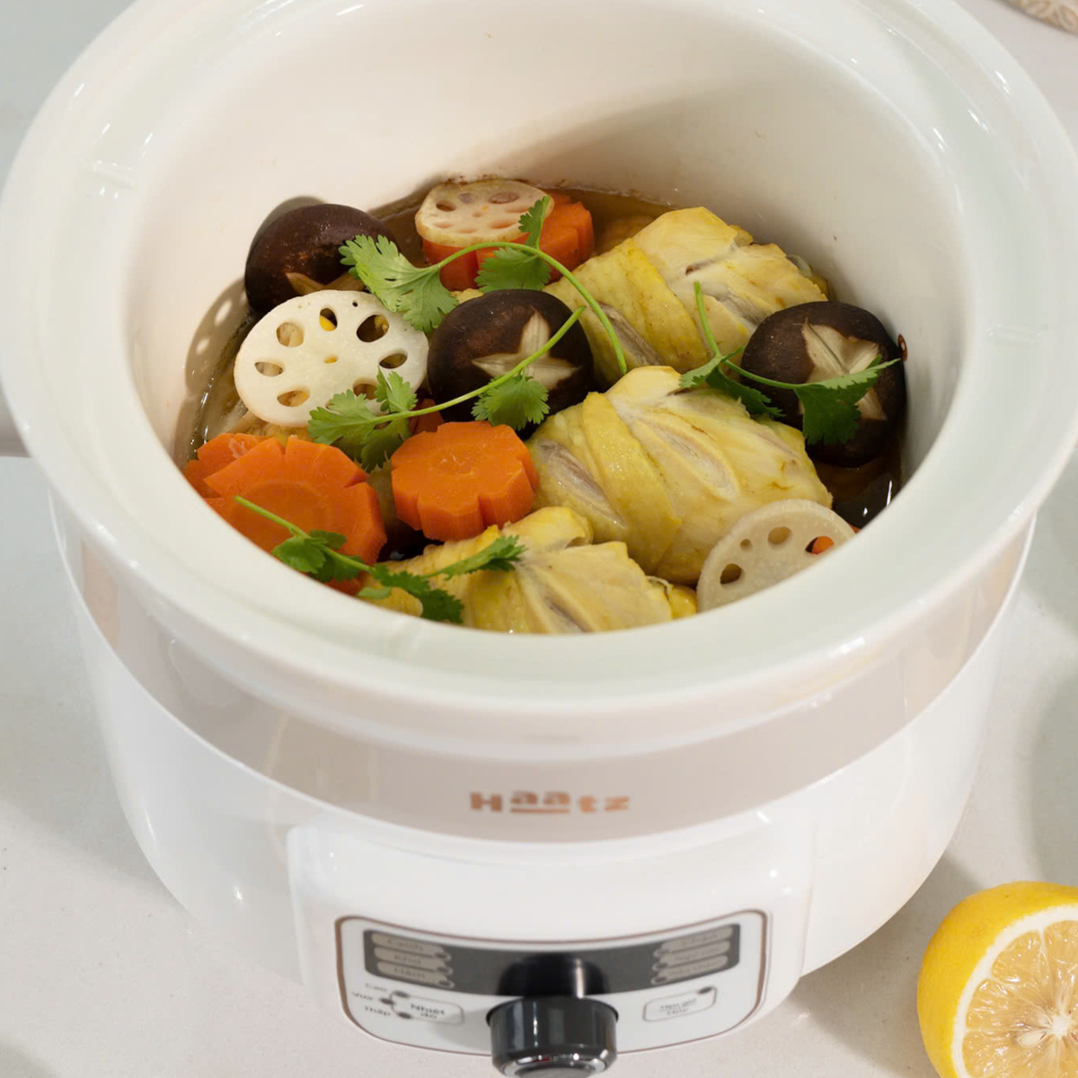 - Đặc biệt, nồi hoạt động êm ái, tiết kiệm điện – bật nấu cả đêm cũng yên tâm. Nồi nấu chậm Haatz CIM361 là sản phẩm lý tưởng cho những bữa ăn ngon miệng và giàu dưỡng chất cho cả gia đình. Với thiết kế hiện đại, lòng nồi bằng gốm tự nhiên an toàn, này không chỉ giúp bạn chế biến các món ăn bổ dưỡng mà còn giữ trọn vẹn hương vị và chất dinh dưỡng. Sản phẩm đặc biệt phù hợp cho những ai yêu thích nấu các món chưng yến, canh hầm, hay cháo thơm ngon.
