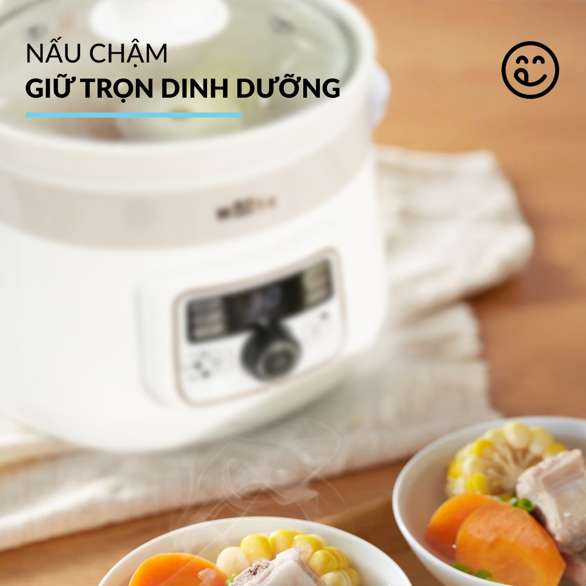- Chế độ nấu chậm thông minh – không lo khét, không trào sôi, nấu xong tự động chuyển giữ ấm.