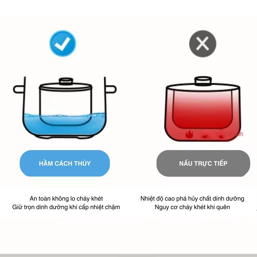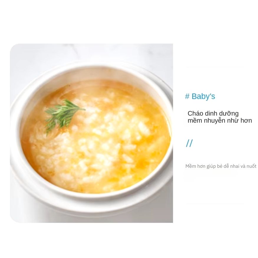 - Nấu ăn đa năng: Hỗ trợ nhiều chức năng như nấu cháo, hầm, hấp, chưng, kho, nấu chè, khử trùng bình sữa.