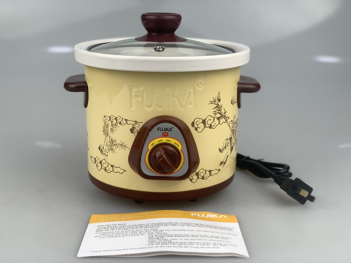THÔNG SỐ KỸ THUẬT: Tên sản phẩm: Nồi Kho Cá Thịt,Nấu Chậm,Nấu Cháo,Nồi Tiềm 2.5L Fujika KC25 Màu Vàng Hoạt Tiết-Hàng chính hãng Điện áp: 220V - 50Hz Công suất: 240W Dung tích nồi: 2.5L