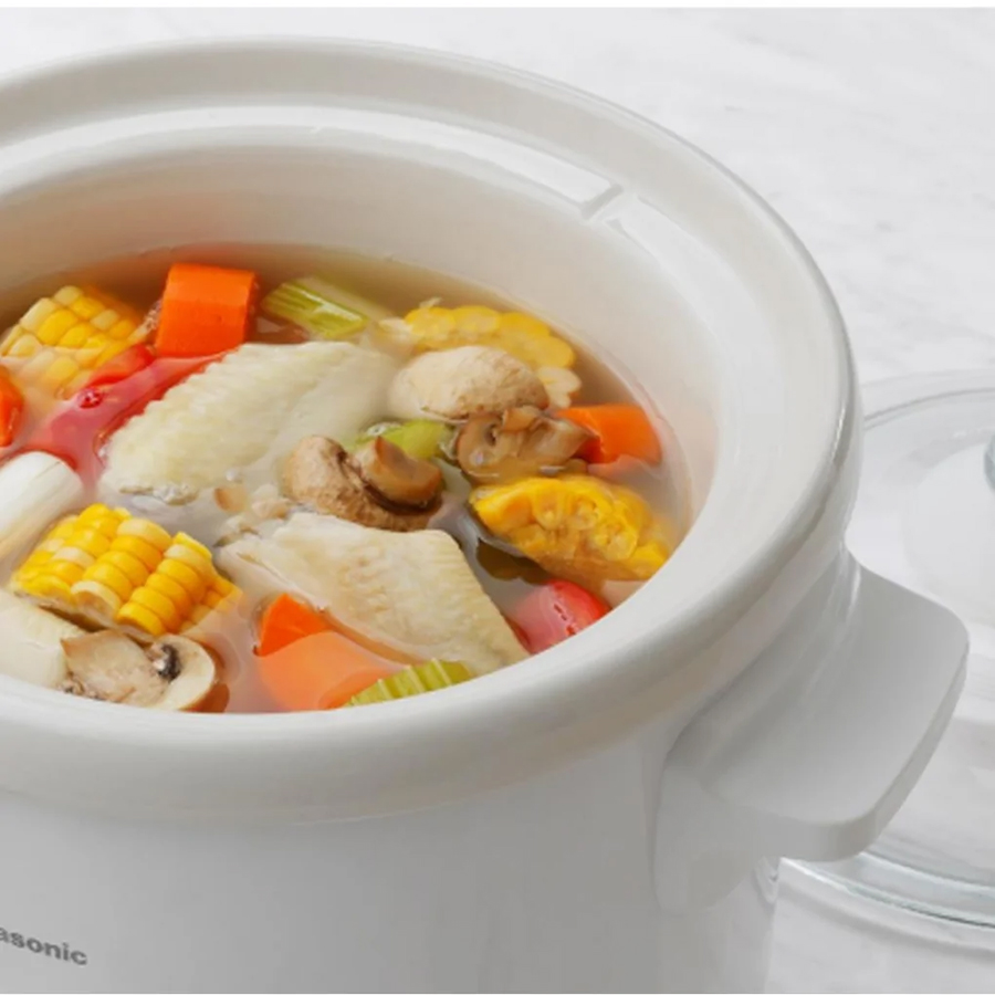 - Nồi nấu chậm Panasonic có thể nấu được nhiều món như: làm sữa chua, làm mứt, nấu phở, hầm thịt, kho thịt, nấu chè, nấu soup, nấu cháo,… hoặc có thể dùng để hâm nóng thức ăn cực kì tiện lợi và dễ dàng.
