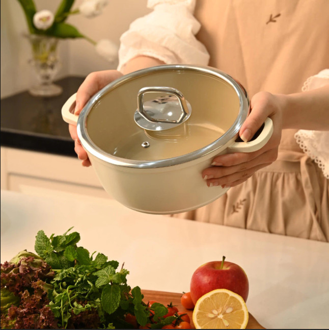 Nồi Phủ Gốm Chống Dính Đáy Từ Haatz Size 20cm - Made In Korea Dùng Mọi Loại Bếp - Bảo Hành 2 Năm