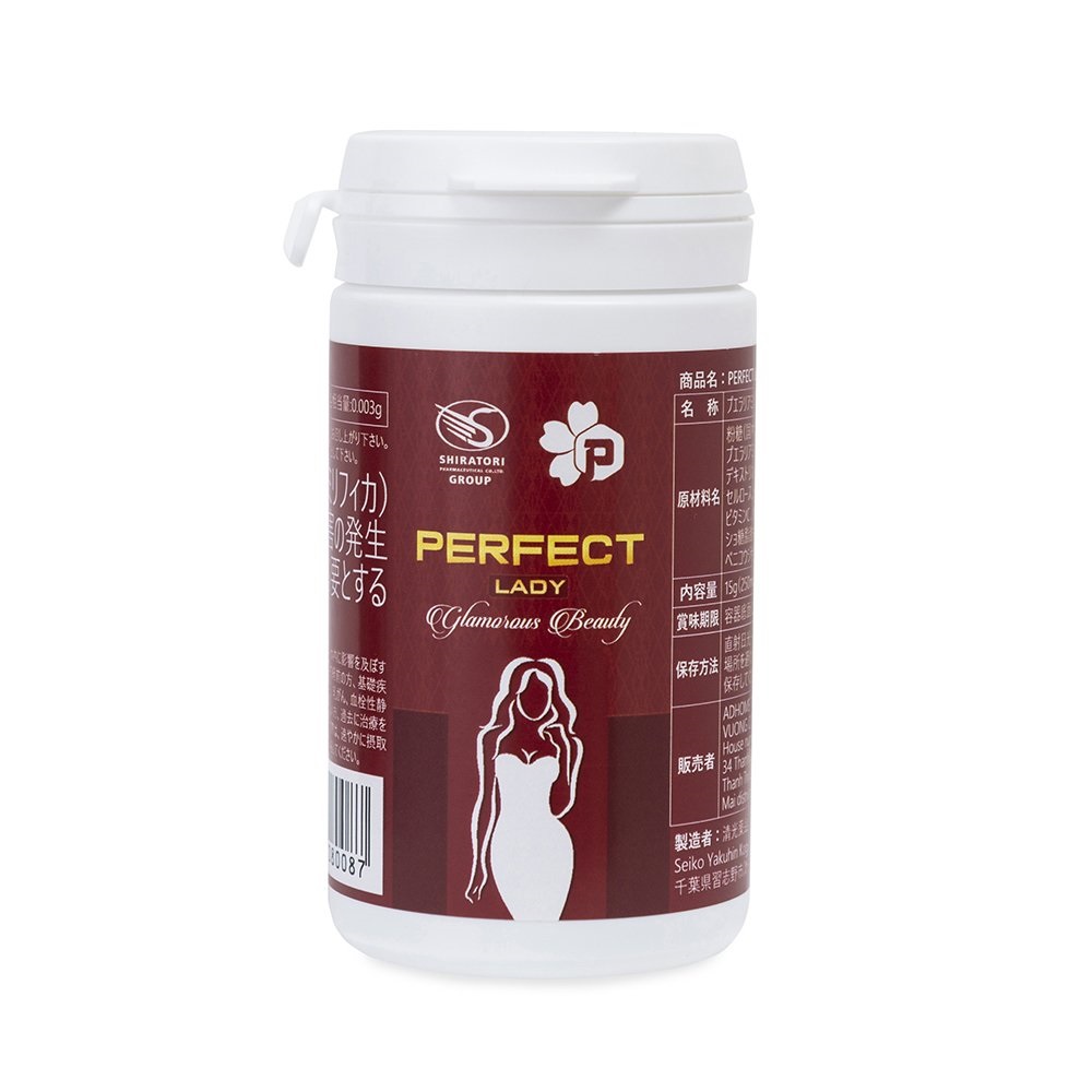 Viên uống Bổ Sung Nội Tiết Tố Nữ Perfect Lady   Duy trì, Bổ sung nội tiết tỗ nữ giúp chị em duy trì phục hồi các chức năng do nội tiết tố nữ chi phối, Perfect Lady  giúp bạn thắt chặt yêu thương, thăng hoa cảm xúc, hạnh phúc, xinh đẹp, tự tin thành công. Perfect Lady  NGUỒN GỐC XUẤT XỨ Viên uống Bổ Sung Nội Tiết Tố Nữ Perfect Lady  Xuất xứ: Nhật Bản Nhà sản xuất: Tập đoàn Shiratori ĐC: 6-11-24 Tsudanuma, Narashino-City; Chi Ba 275-0016 Nhật Bản PHÂN PHỐI BỞI: Công ty TNHH  Beauty Tokyo Mã Số Thuế : 0109727160 Địa chỉ Trụ sở chính:  A1214 Sảnh A2, HD Mon City, số 4 Hàm Nghi, P Mỹ Đình 2, Q Nam Từ Liêm, Hà Nội PHIẾU CÔNG BỐ Cục Quản lý Dược – Bộ Y tế VIỆT NAM  : 4311/2021/ĐKSP Sản phẩm được cấp chứng nhận GMP tại Nhật Bản và được chính phủ Nhật cho phép lưu thông tự do THÀNH PHẦN: TÁC DỤNG: Perfect Lady  Hỗ trợ ngăn các triệu chứng tiền mãn kinh mãn kinh ( Rối loạn kinh nguyệt kinh đen, kinh ít, mất kinh, mãn kinh sớm do thiếu hụt nội tiết, khô hạn, bốc hỏa, khó chịu, nóng nảy dễ cáu gắt, rụng tóc, khó ngủ, lão hóa da, nám sạ). Công dụng Sâm tố nữ (Pueraria mirifica).