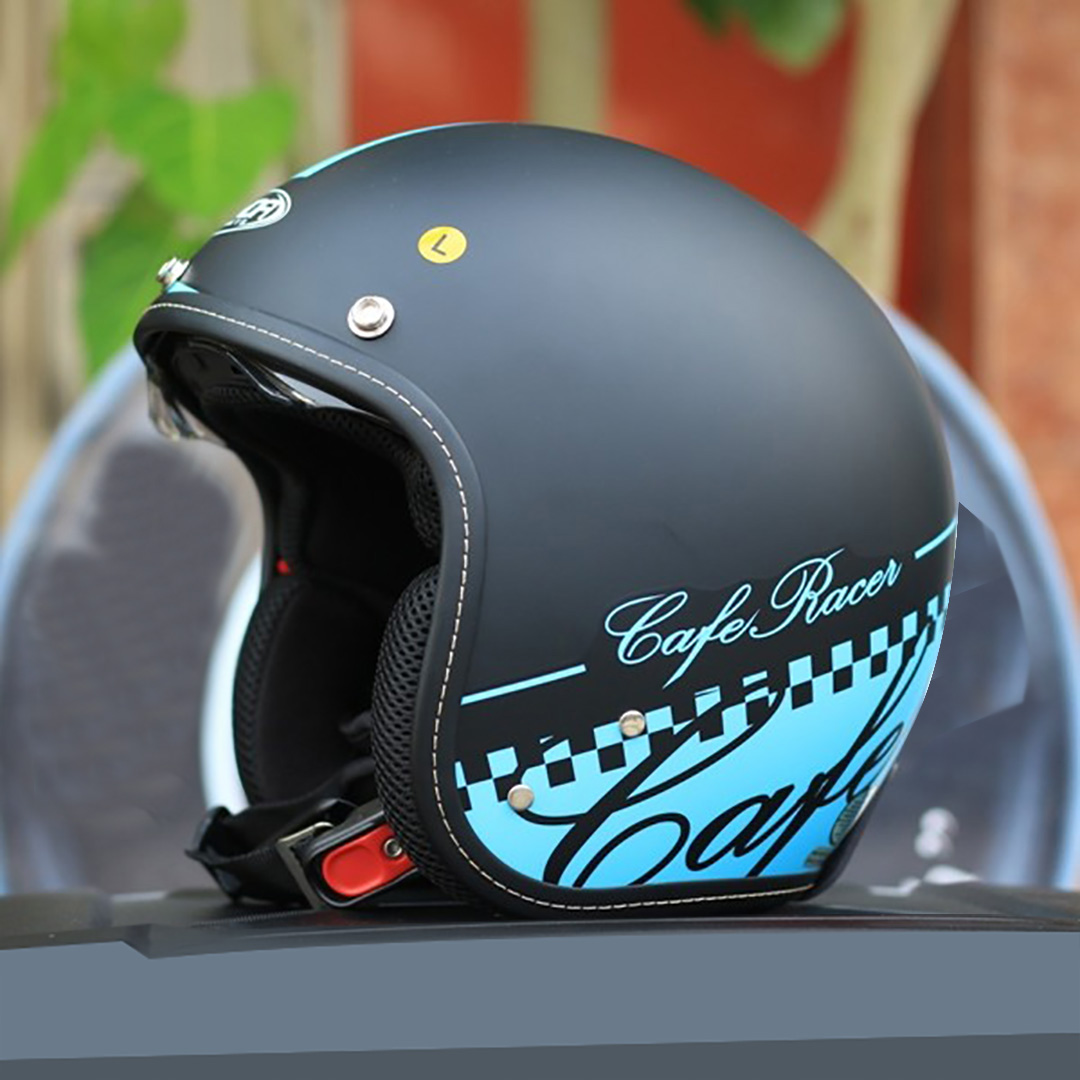 - Phong cách thiết kế: mũ kiểu 3/4 kèm kính dài, mũ được thiết kế dáng tròn, đi kèm 2 miếng ốp má, giúp tăng thêm hiệu quả bao phủ, bảo vệ khuôn mặt. -