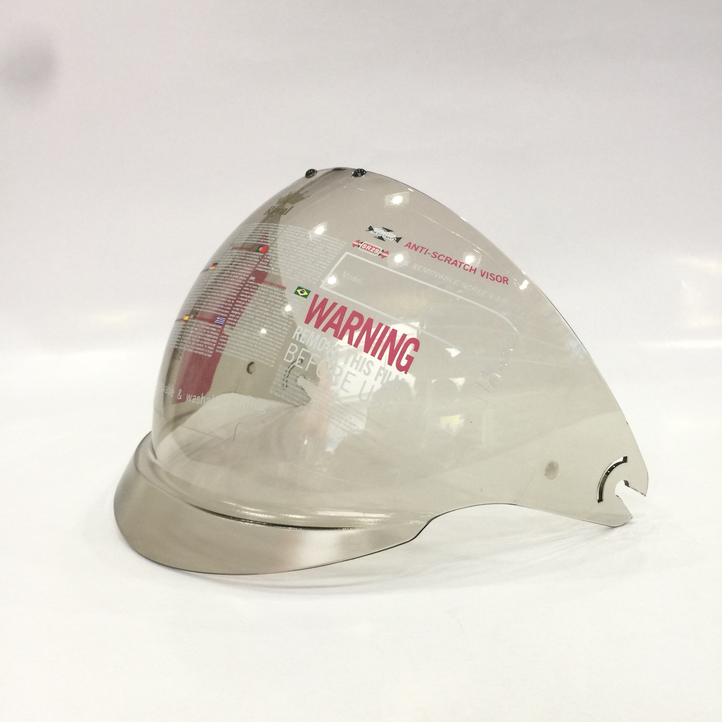 - Kính thẳng có 3 nút đồng gắn nón bảo hiểm - Có thể kéo mở lên xuống - Gắn chắc với các dòng nón Royal, Asia, Bulldog, Andes - Mặt kính đồng nhất, tầm