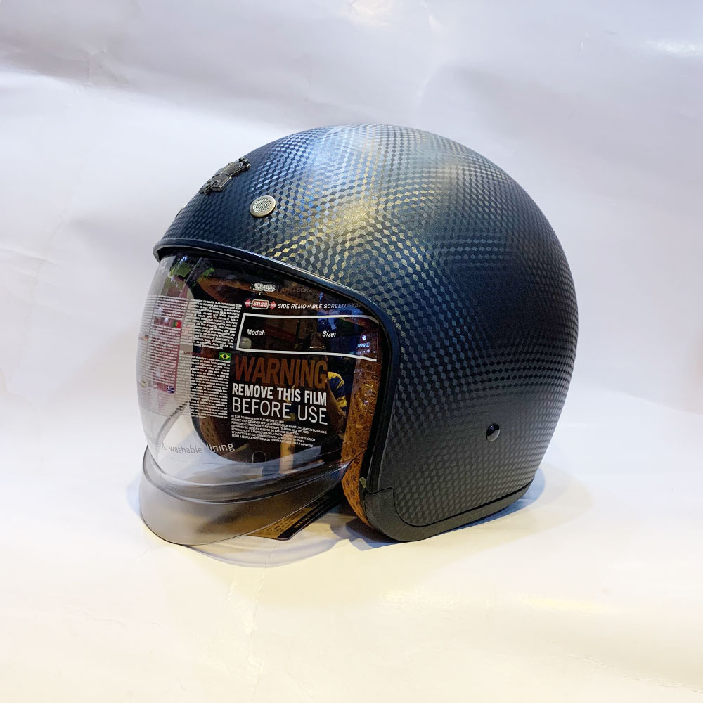 Giới thiệu mũ 3/4 Bulldog Heli Carbon Mũ bảo hiểm Bulldog Heli Carbon 3/4 đậm chất cổ điển và được trau chuốt tỉ mỉ đến từng chi tiết, đặc biệt chất liệu mới sợi Carbon