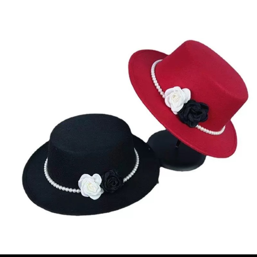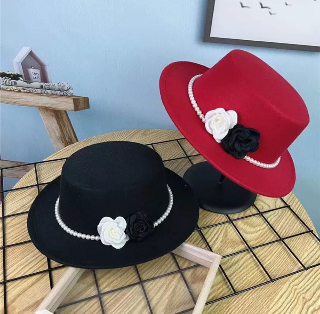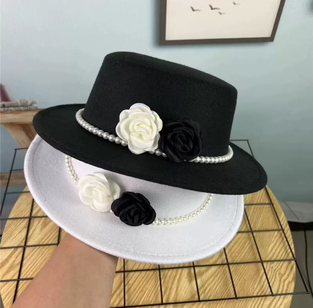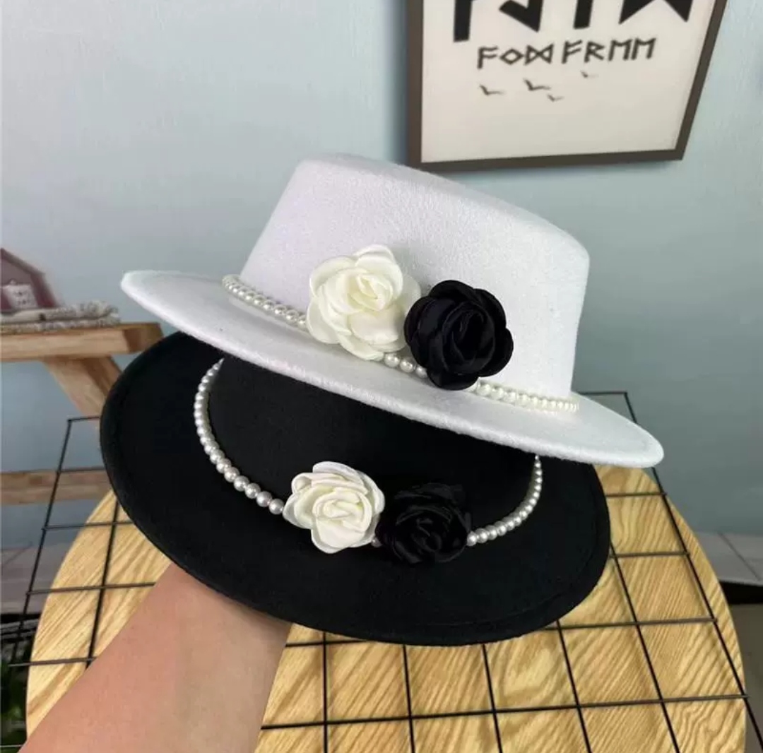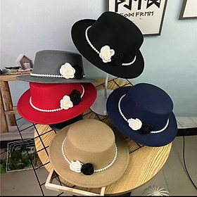 Mua tại TiktokNón cao bồi vành bằng mũ rộng vành nỉ dạ phối 2 hoa đen trắng đai ngọc trai nhân tạo thời trang Hàn Quốc Nón đi biển mũ vành nhỏ thoáng mát thời trang du lịch dã ngoại