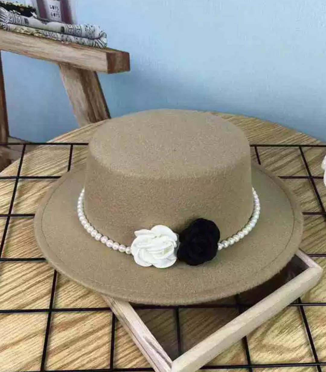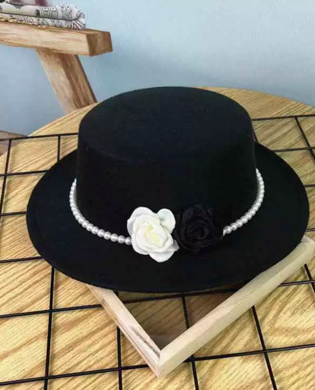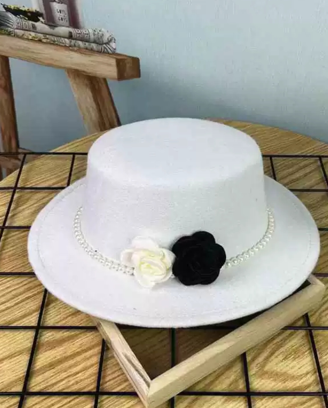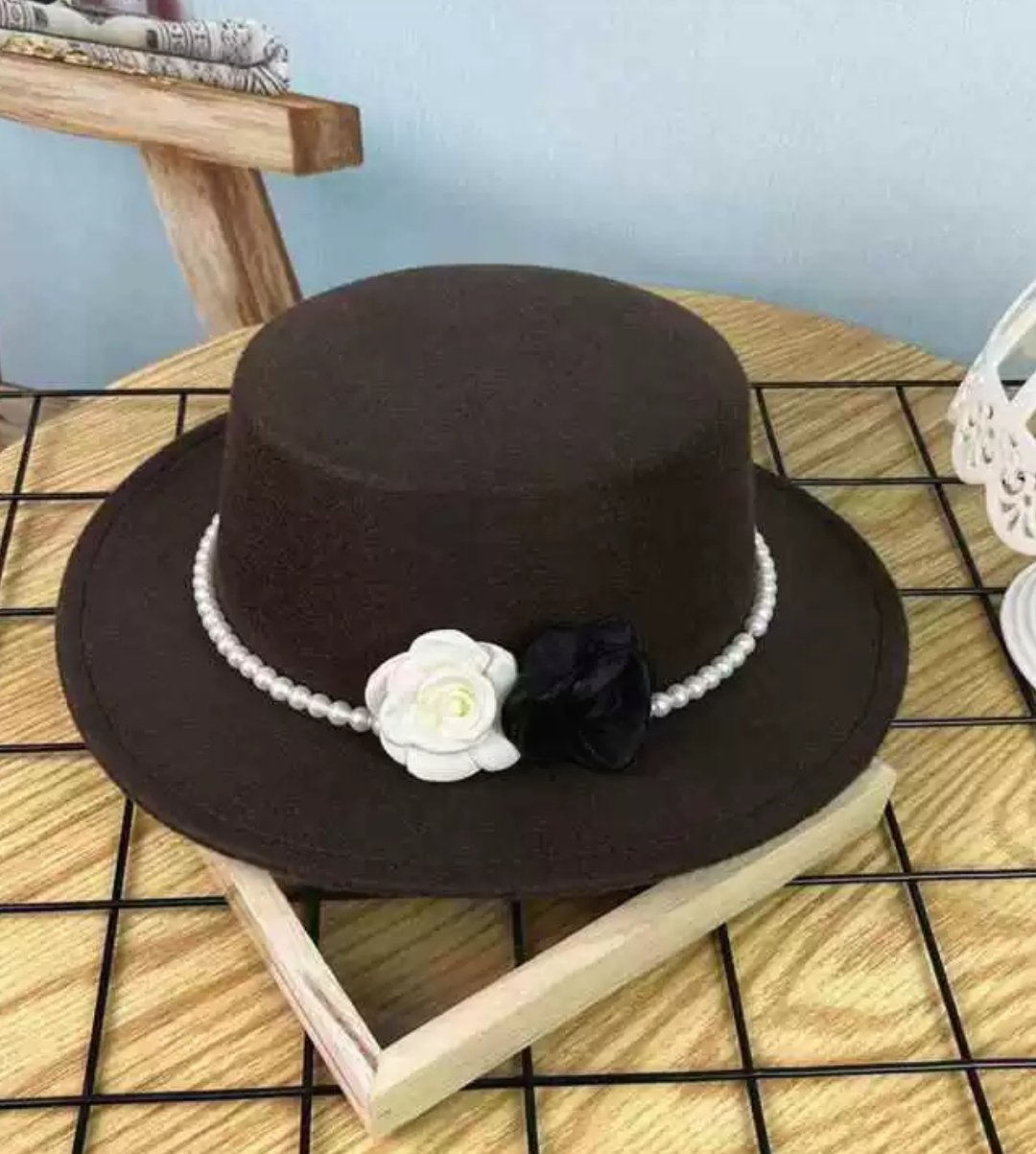 Mua tại TiktokNón cao bồi vành bằng mũ rộng vành nỉ dạ phối 2 hoa đen trắng đai ngọc trai nhân tạo thời trang Hàn Quốc Nón đi biển mũ vành nhỏ thoáng mát thời trang du lịch dã ngoại