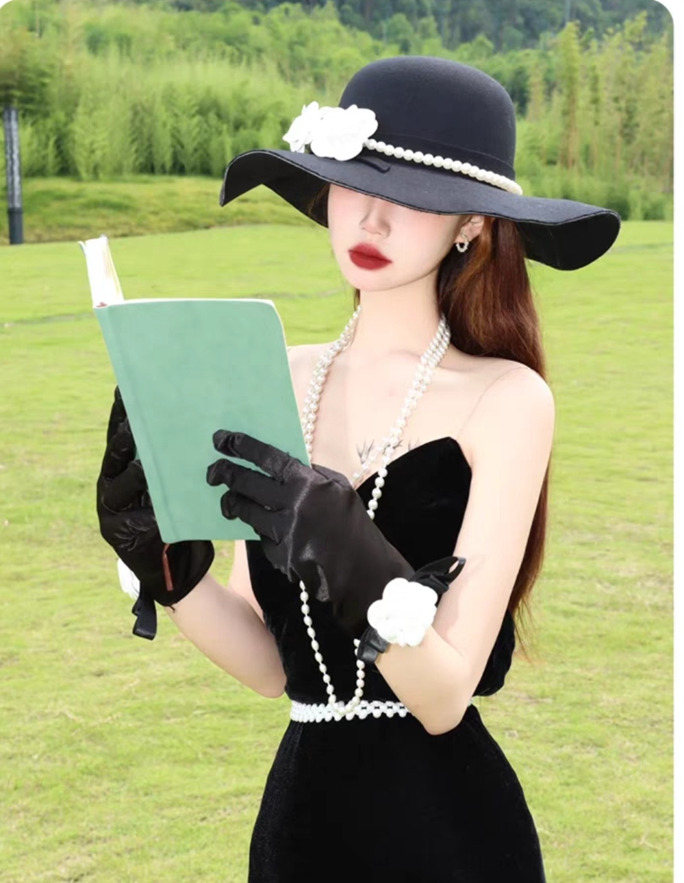 ✨Nón fedora vành rộng mũ rộng vành nỉ phối 2 hoa trắng đai ngọc trai nhân tạo sang trọng