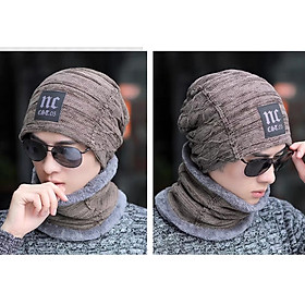 Mũ len nam nón len nam khăn choàng cổ thời trang Hàn Quốc Hàng nhập Chất len 2 lớp Bộ sản phẩm gồm nón và khăn y hình