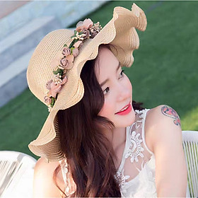 Mũ đi biển đẹp nón rộng vành nhỏ đai hoa lá thời trang Hàn Quốc Chất liệu cói