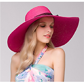 Nón cói đi biển nữ đầu bằng dây da LOULIHAT, mũ cói rộng vành chống nắng thời trang Hàn Quốc
