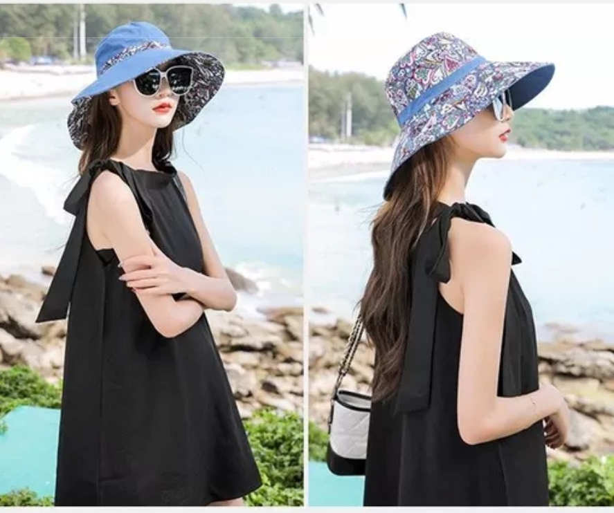 Mũ nón đi biển rộng vành chống nắng đội 2 mặt gấp gọn chống tia UV Chất liệu vải cotton 2 mặt thoáng mát Hàng nhập Kiểu dáng thời trang phù hợp với nhiều trang