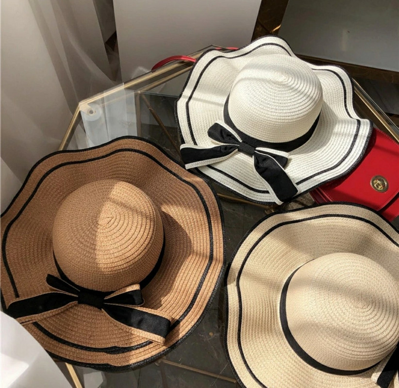 Mũ cói rơm vành phẳng nữ mùa hè phiên bản Hàn Quốc chống nắng UV cho kỳ nghỉ Nón đi biển Paris thời trang hàng đầu Pháp Chất liệu cói
