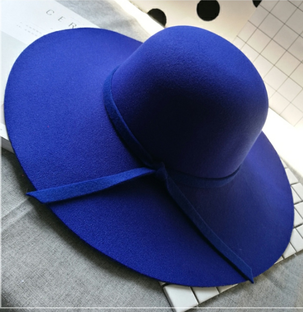 ✨Nón vành rộng mũ rộng vành đi biển chống nắng nữ fedora màu xanh nỉ thời trang Hàn Quốc dona22030803