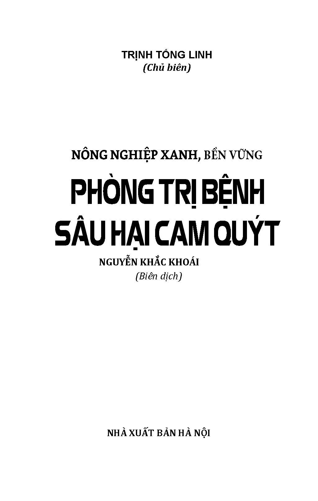 Bộ sách "Nông nghiệp xanh, sạch" phổ cập kiến thức khoa học kỹ thuật và quy trình sản xuất tiên tiến; Nội dung ngắn gọn, thực tế, dễ áp dụng để nâng cao chất lượng hiệu quả sản phẩm; giúp nông dân xóa đói, giảm nghèo và xây dựng nông thôn mới. “Phòng trị bệnh sâu hại cam quýt” cuốn sách giúp nhà nông có thể nhận biết dễ dàng các chủng loại bệnh hại cam quýt như: bệnh rụng lá, bệnh thối gốc… các loại ve, bướm và sâu hại cam quýt như : ve mốc, rệp phấn… để người dân hiểu rõ tập tính sinh hoạt của sâu bệnh từ đó có những biện pháp trị bệnh hiệu quả đem lại năng suất cao, chất lượng tốt cho sản phẩm.