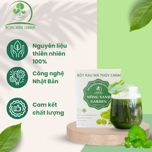 Mua tại TiktokBột rau má thủy canh đậu xanh cốt dừa là sản phẩm thực phẩm bồ sung kết hợp giữa rau má thủy canh và đậu xanh thuần chủng tạo ra sản phẩm rau má nhanh, tiện lợi nhưng vẫn đảm bảo hương vị lôi cuốn với đầy đủ các hương vị ngọt bùi của đậu xanh, thanh mát của rau má và béo ngậy của nước cốt dừa. Rau má thủy canh được làm sạch bằng phương pháp sục Ozone kết hợp kỹ thuật sấy lạnh và công nghệ nghiền cối đá siêu mịn từ Nhật Bản nên giữ nguyên vẹn được giá trị dinh dưỡng của rau má nguyên chất.