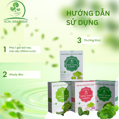 ✨Nông Xanh Garden Bột Rau Má Thủy Canh Nguyên Chất Hộp 15 gói (3gr/1 gói) hòa tan uống liền, không đường, thanh nhiệt