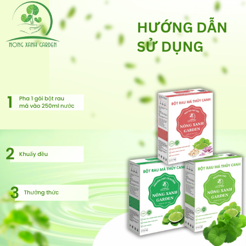 Hộp Bột Rau Má Thủy Canh Nguyên Chất Nông Xanh Garden 45GR Thực phẩm bổ sung Bột rau má với thành phần từ Rau má thủy canh tươi sau khi thu hoạch được làm sạch