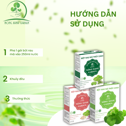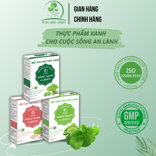 Hộp Bột Rau Má Thủy Canh Nguyên Chất Nông Xanh Garden 45GR Thực phẩm bổ sung Bột rau má với thành phần từ Rau má thủy canh tươi sau khi thu hoạch được làm sạch