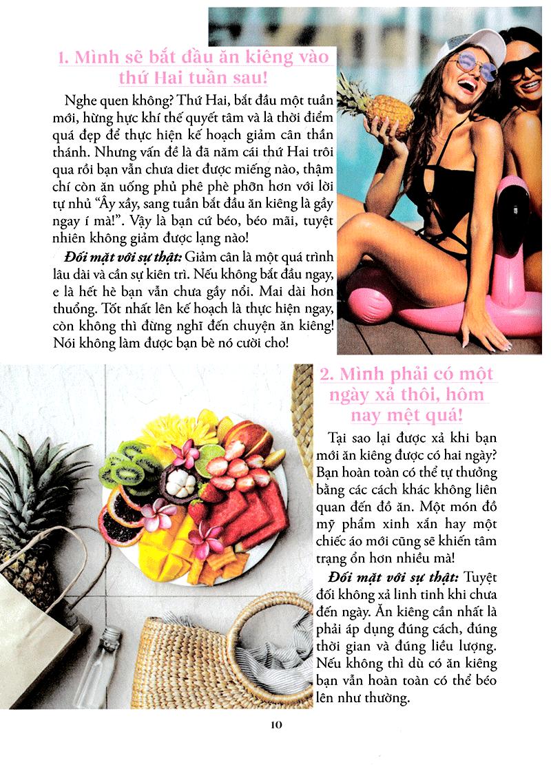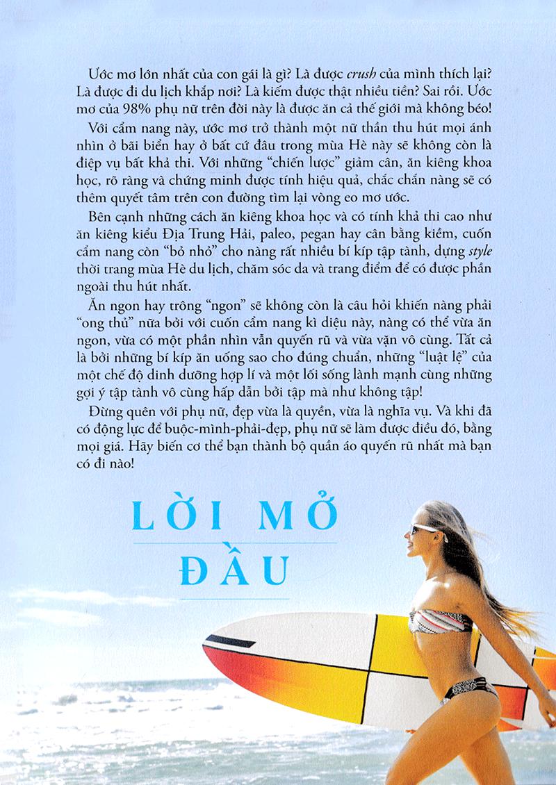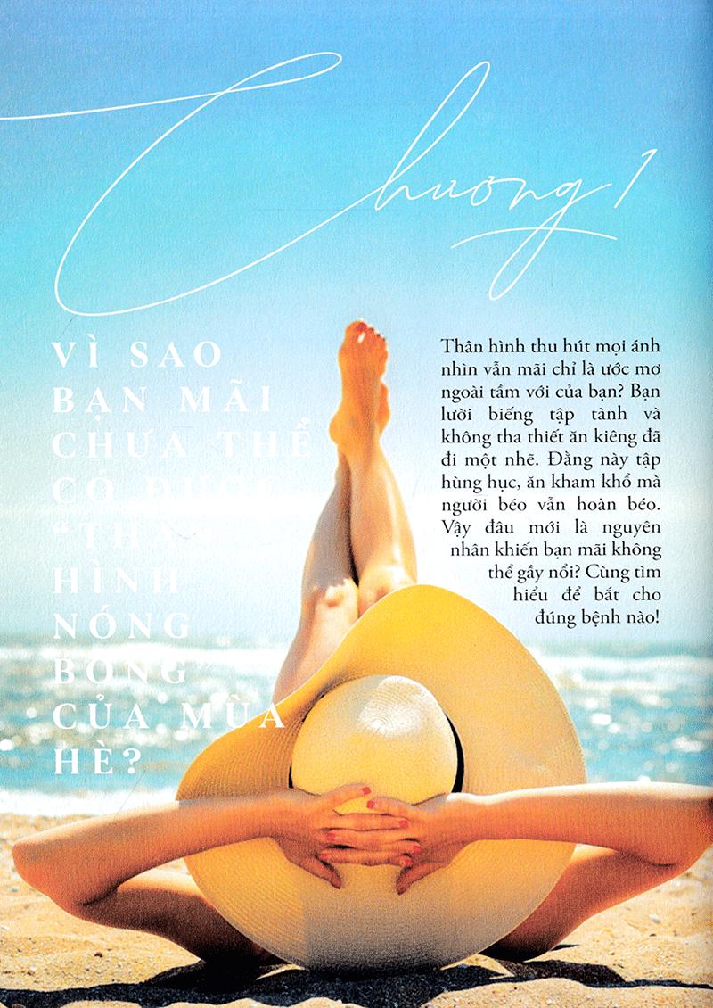 Nữ Thần Bãi Biển Ước mơ lớn nhất của con gái là gì? Là được crush của mình thích lại? Là được đi du lịch khắp nơi? Là kiếm được thật nhiều tiền? Sai rồi. Ước mơ của 98% phụ nữ trên đời này là được ăn cả thế giới mà không béo! Nhưng ước mơ chỉ là mơ ước, bởi chỉ có vỏn vẹn 2% phụ nữ được ban cho đặc ân “ăn hoài mà không lên cân”, chứ còn đa số còn lại chỉ cần uống xong cốc nước lọc hay trót liếc nhìn cái bánh cupcake thôi cũng đã thấy quần chật thêm một ít! Bi kịch bắt đầu trở nên rõ ràng hơn khi mùa Hè đến, khi không còn những chiếc áo khoác dày cộp, những cái áo len to sù sụ giấu đi lớp mỡ dày bịch ở bụng hay đùi nữa. Thế là phụ nữ là đau đầu chọn lựa xem Hè này mình sẽ ăn ngon hay nhìn “ngon”, và phần lớn câu chuyện sẽ bắt đầu theo kiểu: Nhất định mùa Hè này mình sẽ có thân hình bikini bốc lửa thiêu đốt mọi ánh nhìn, mình sẽ giảm cân, tập tành tử tế, ăn kiêng từ bây giờ!!! quyết tâm ngùn ngụt Để rồi hai tháng sau, vẫn thấy cân nặng nằm im một chỗ, đồ tập tủi thân đắp đống ở góc phòng, còn nàng vẫn rồn rột hút trà sữa và tự nhủ “Thôi để tuần sau bắt đầu lại!”. Kết quả là trước Hè, mục tiêu của nàng là giảm được 5 kg. Sau Hè, nàng lại thầm nhủ “Cố lên, chỉ cần giảm… 8 kg nữa thôi là đạt được số cân mơ ước rồi!”. Thế còn buồn không cơ chứ?! Những bộ đồ mua để gầy-rồi-mặc vì thế cứ vĩnh viễn bị treo ở trong tủ hết mùa này đến mùa khác. Và con gái vẫn cứ vật lộn với câu hỏi “Làm sao để mùa Hè không béo?”. Đã đến lúc thay đổi rồi! Với cẩm nang này, ước mơ trở thành một nữ thần thiêu đốt mọi ánh nhìn ở bãi biển hay ở bất cứ đâu trong mùa Hè này sẽ không còn là điệp vụ bất khả thi. Với những “chiến lược” giảm cân, ăn kiêng khoa học, rõ ràng và chứng minh được tính hiệu quả, chắc chắn nàng sẽ có thêm quyết tâm trên con đường tìm lại vòng eo mơ ước. Bên cạnh những cách ăn kiêng khoa học và có tính khả thi cao như ăn kiêng kiểu Địa Trung Hải, paleo, pegan hay cân bằng kiềm, cuốn cẩm nang còn “bỏ nhỏ” cho nàng rất nhiều bí kíp tập tành, dựng style thời trang mùa Hè du lịch, chăm sóc da và trang điểm để có được phần ngoài thu hút nhất được chia sẻ bởi những hot beauty blogger và fashionista như Hana Giang Anh, Daul Be hay Julia Đoàn. Ăn ngon hay trông “ngon” sẽ không còn là câu hỏi khiến nàng phải “ong thủ” nữa bởi với cuốn cẩm nang kì diệu này, nàng có thể vừa ăn ngon, vừa có một phần nhìn vẫn quyến rũ và vừa vặn vô cùng. Tất cả là bởi những bí kíp ăn uống sao cho đúng chuẩn, những “luật lệ” của một chế độ dinh dưỡng hợp lí và một lối sống lành mạnh cùng những gợi ý tập tành vô cùng hấp dẫn bởi tập mà như không tập! Mùa Hè này bạn muốn điều gì? Để người khác phải ghen tị với thân hình của mình, hay mình ghen tị với thân hình của người khác? Nếu muốn điều thứ nhất, thì tất cả những gì bạn cần chính là cuốn sách “NỮ THẦN BÃI BIỂN” này, cộng với sự quyết tâm và kiên trì của bản thân. Đừng quên với phụ nữ, đẹp vừa là quyền, vừa là nghĩa vụ. Và khi đã có động lực để buộc-mình-phải-đẹp, phụ nữ sẽ làm được điều đó, bằng mọi giá. Hãy biến cơ thể bạn thành bộ quần áo quyến rũ nhất mà bạn có đi nào!