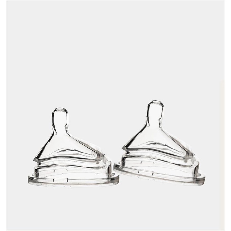 - Núm vú phẳng, tròn và có kích thước phù hợp với nhu động bú và phát triển miệng của trẻ, không gây hô miệng khi sử dụng núm vú nhân tạo trong thời gian  dài.      - Với thiết kế đặc biệt mô phỏng theo hình thái học của vú mẹ với phần giữa của núm bị thu hẹp và gốc mở rộng giúp ổn định vị trí khi ngậm.      - Đường kính núm vú rộng, hình dạng và độ dài hoàn toàn giống vú mẹ với vẻ ngoài đơn giản và đường cong mượt mà, khiến bé yêu mẹ hơn và thoải mái khi bú.    - Độ dày: Về tổng thể, núm vú dày vừa đủ để núm vú đảm bảo tính mềm mại tự nhiên, ngoài ra phần gốc dưới được làm dày hơn để không dễ bị xẹp, tăng độ bền và thoải mái hơn trong quá trình bú.      - Chất liệu: Silicone mềm mại, thoải mái, thân thiện với là da, giống như bú mẹ tự nhiên và bé dễ dàng chấp nhận.      - Vòng bảo vệ: Bên ngoài lỗ núm vú có vòng bảo vệ giúp duy trì kích thước ban đầu của lỗ núm vú, tạo dòng chảy sữa ổn định và bảo vệ núm vú khi bị bé cắn.      - Thành trong của cổ núm vú được thiết kế có rãnh chông lép. Khi bé cắn núm vú, sữa vẫn có thể chảy ra từ đường nối bên của rãnh. Bé vẫn bú dù cố tình ngậm hay cắn núm.      - Thiết kế lệch tâm: Núm vú được thiết lệch tâm tạo thành một góc nhất định với bình bú giúp sữa có thể chảy từ bình vào miệng rồi xuống cổ họng một cách thuận lợi. Điều này giúp sữa được nuốt tự nhiên và tránh sặc hiệu quả vì đưa sữa trực tiếp vào gốc lưỡi và cổ họng.  - Núm vú lệch tâm cần độ dốc thấp, bé không cần ngửa đầu, chúc bình sữa lên cao gây mỏi tay bé, ngoài ra không chúc bình cao giúp bé không bị bình sữa che mắt, có thể quan sát mẹ và cảnh vật xung quanh, tăng cường kết nối.      - Núm vú lệch tâm tạo độ dốc thấp, có thể ngăn sữa vào tai giữa qua ống tai một cách hiệu quả, giảm áp lực lên khoang tai của bé và ngăn ngừa các bệnh về tai.      - Thiết kế chống đầy hơi: Với van thoát hơi thông minh giúp thoát khí chống đầy hơi có thể cân bằng hiệu quả áp suất trong bình đồng thời giảm lượng không khí đi vào bình sữa. Điều này làm giảm nấc cụt, nôn trớ và các triệu chứng khó chịu khác của bé do nuốt phải không khí gây đầy hơi.